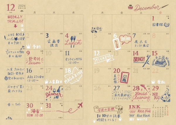 ・マンスリーページ(2023年12月〜2025年3月までの16ヵ月分)