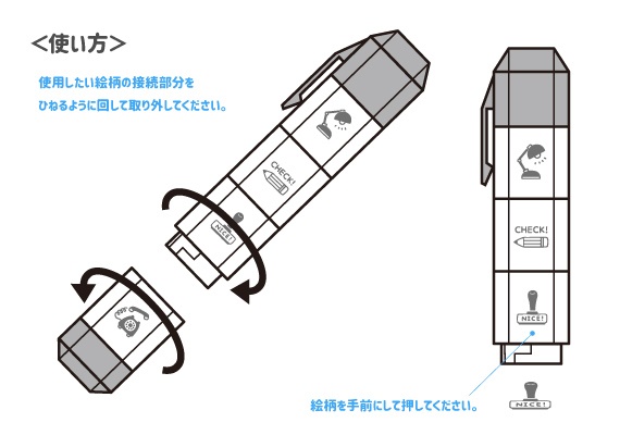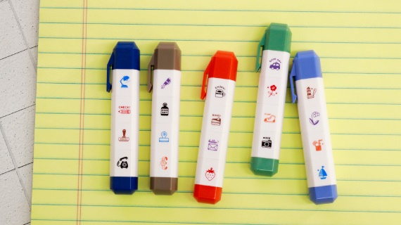 消しゴムはんこ作家・イラストレーター[eric]デザインの小さく繊細なアイコンがデザインされた、ポン!と手軽におせる浸透印スタンプ大人可愛い5色のホルダーカラー。デザインに合わせたインクの色も楽しめます。(油性顔料インク)