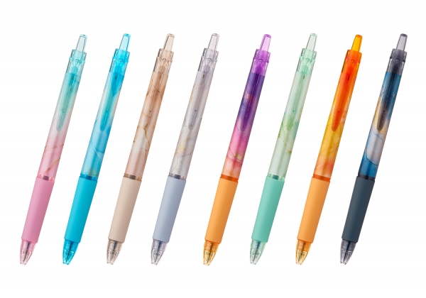 「暮らしの中に映える差し色筆記具」をコンセプトに、インテリアや雑貨でも取り入れられている「アルコールインクアート」をボディデザインに採用した、普段使いの中でも手元でアートを楽しめる油性ボールペンです。