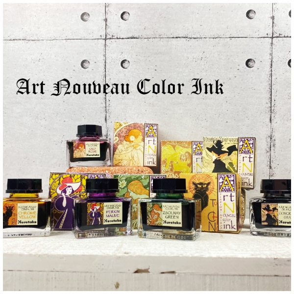 「ink-café アール・ヌーヴォーカラーインク」は、創業120周年の最後の周年商品として発売いたします。創業当時、日本で流行した色をイメージした「明治のいろ」に対して、同じ時代に世界で流行していたアール・ヌーヴォーをイメージしたものが「アール・ヌーヴォーカラーインク」です。