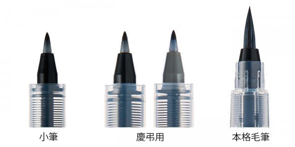当社独自開発の「速乾インキ」を採用し、筆跡がすぐ乾く筆ペン「瞬筆」には、サインペン感覚でトメ・ハネ・ハライが表現できる小筆、黒・うす墨が一本になった慶弔用、本物の筆に近い書き心地の本格毛筆の3アイテムをラインアップしました。