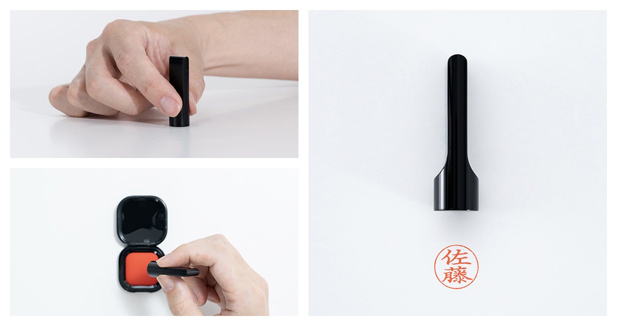 本商品は、新しいプロダクトのデザインを募るコンペ“第15回シヤチハタ・ニュープロダクト・デザイン・コンペティション”において、審査員賞の深澤賞を受賞した松岡 諒氏の作品「つまめるはんこ」を商品化したものです。指の触れる箇所は試作の末にたどり着いた最適な曲線で仕上がっており、使う人の気持ちを変換する道具として、ストレスのない心地よさを実現します。