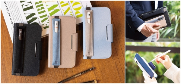 「バンド付きペンケース」は「タッチペン」を収納できるデザインとなっており、手帳型のスマホケース※に取り付けて使用できるため安心して持ち運びいただけます。ケースの素材は手触りがなめらかな UltraSuede®を使用し、優しい質感とペンの出し入れがしやすいデザインが特⾧です。