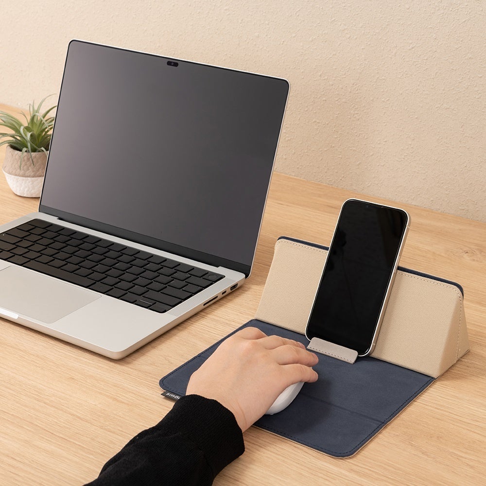 ・ マウスパッド・マルチケース・スマホスタンドの3つの機能をスマートに持ち運べるワークサポートアイテム