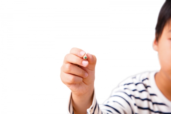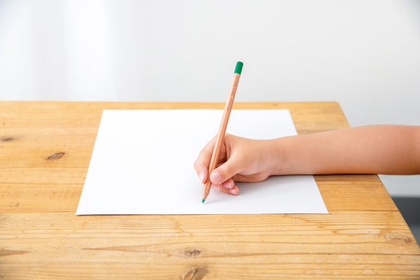 色鉛筆はこれまで学童用を含めて丸軸が中心でしたが、保護者から転がりにくくて、鉛筆のようにしっかり握れる「六角軸」が好ましいとの要望をいただきました。本製品は机の上で転がりにくいためたくさんの色を(缶から)出して選べます。持ち方が安定していない児童も(鉛筆のように)親指・人差し指・中指できちんとにぎって描けます。