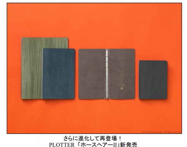 この度、当社が展開しているプロダクトブランド「PLOTTER(プロッター)」から、ブランド立ち上げ当初にラインアップし、その後生産終了となった「ホースヘアー」の進化版「ホースヘアーⅡ」[A5 サイズ(22,000 円)、バイブルサイズ(16,500 円)、ナローサイズ(15,400 円)、ミニサイズ(13,200 円)、ブラック/ネイビー/グレー/グリーン…計 4 色]を 2023 年 11 月 29 日(水)に発売します。