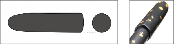 蓋:黒檀、筋状成形、漆塗り、箔散