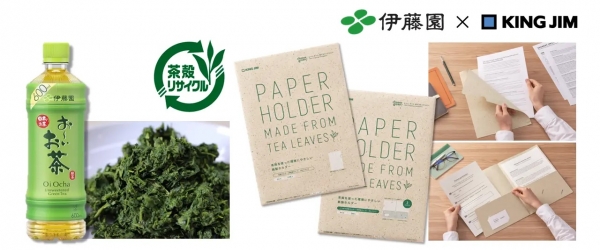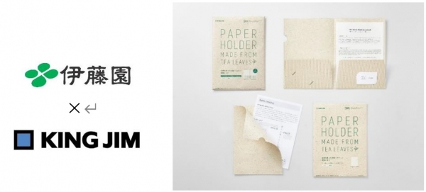 株式会社キングジム(本社:東京都千代田区 代表取締役社長:宮本 彰、以下「キングジム」)と株式会社伊藤園(本社:東京都渋谷区 代表取締役社長 執行役員:本庄 大介、以下「伊藤園」)は、伊藤園が展開する「茶殻リサイクルシステム」により開発された「茶殻紙」を活用した「紙製ホルダー(茶殻紙タイプ)」