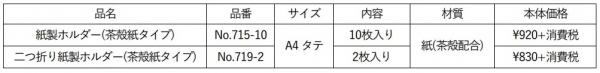 製品名・価格:「紙製ホルダー(茶殻紙タイプ)」(10枚入り) ¥920+消費税