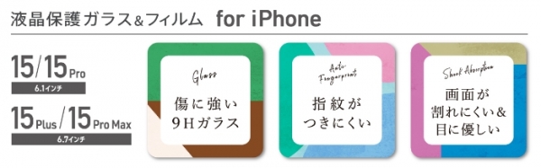 ヒサゴ 新機種「iPhone 15/15 Pro」「iPhone 15 Plus/15 Pro Max」専用 液晶保護ガラス&フィルム