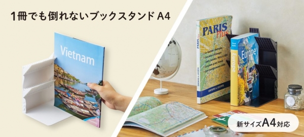 株式会社LIHIT LAB.(本社:大阪市中央区農人橋1-1-22 代表取締役社長:田中宏和)ではこの度、2022年10月の発売以来、大変ご好評頂いている『1冊でも倒れないブックスタンド』に新サイズを追加し、12月上旬より発売します。