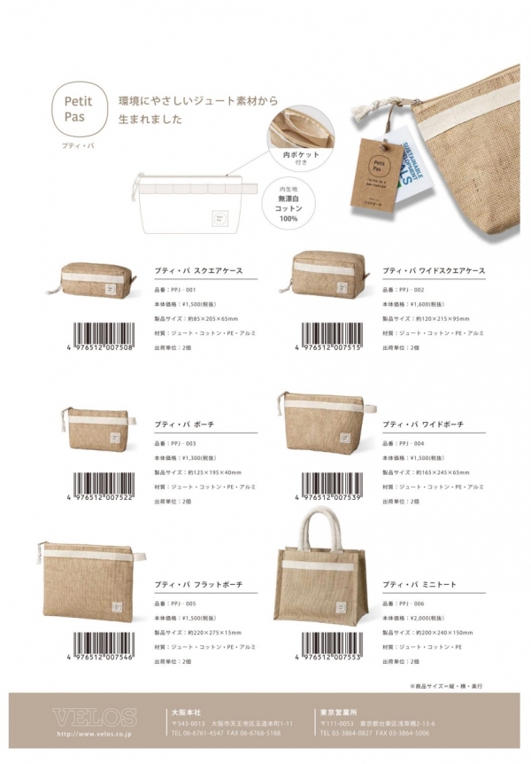 ベロスは、環境にやさしいジュート素材から生まれた「プティ・パ」を発売。