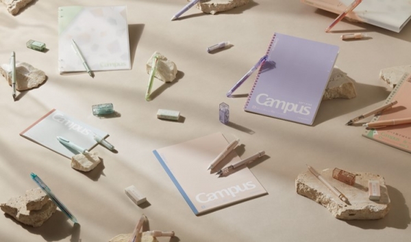 学生の学習環境が大きく変化する中、学びの時間を総合的に応援したいという共通の思いから、“書くもの(筆記具)、書かれるもの(ノート)、消すもの(消しゴム他)”のアイテムを横断して同じ世界感を楽しめるよう4ブランドによるコラボレーションが昨年に引き続き実現します。学びブランドの定番「キャンパス」と、学生から高い支持を集める「MONO」、「Dr.Grip」、そして今年新たに「HI-TEC-C COLETO」が加わります。