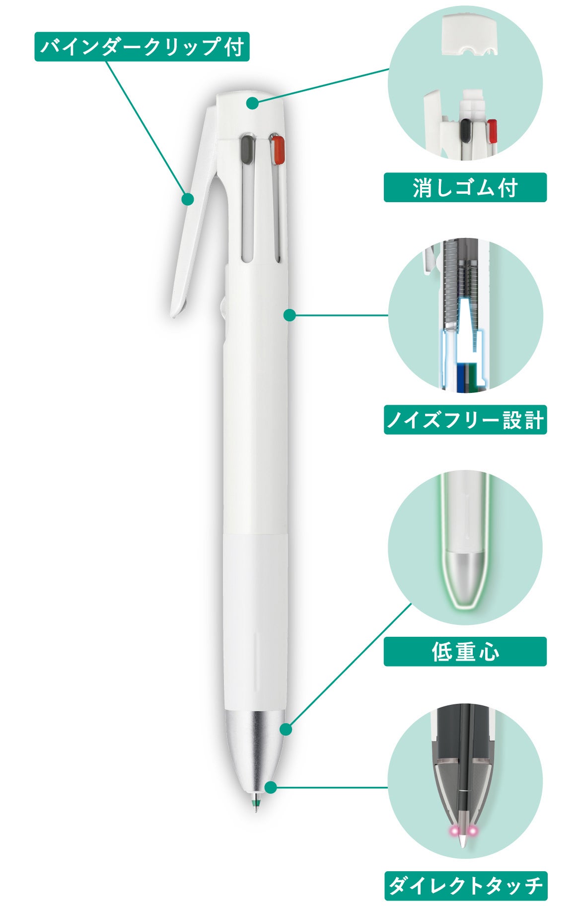 1.筆記振動を防ぐブレンシステムを5機能ペンでも搭載