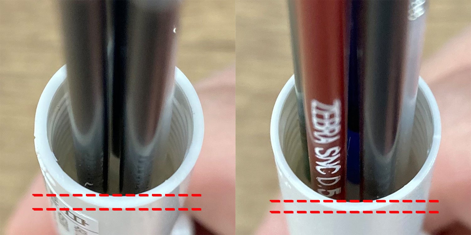 ▲軸の厚みの比較(左:当社従来品 右:新商品)