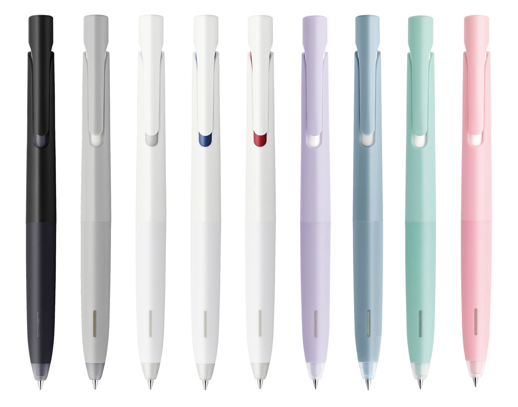 (写真左から)0.5㎜:黒、パウダーブルー、ココアブラウン、グレージュ、白 0.7㎜:黒、ブルーグレー、ミントグリーン、シェルピンク、白