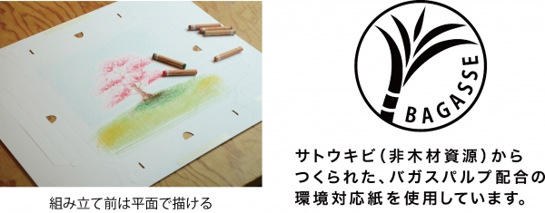 ・描いた絵をそのまま飾れる、環境対応紙を使用した組み立て式のキャンバス
