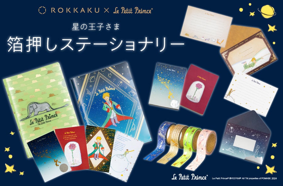 『フタバ株式会社』(本社:愛知県名古屋市、代表取締役:市川 隆史)は、箔押しペーパーアイテムブランド『ROKKAKU』と世界中で愛され続けている小説『星の王子さま』のコラボによる「ポストカード」「マスキングテープ」「クリアファイル」「レターセット」「文庫本ノート」を2025年2月3日(月)から一部の郵便局店頭及び「郵便局のネットショップ」で販売開始します。