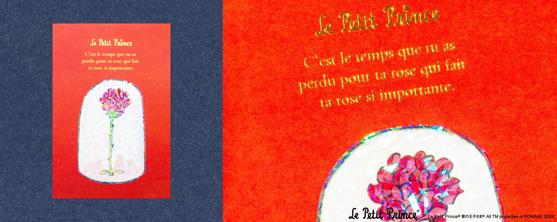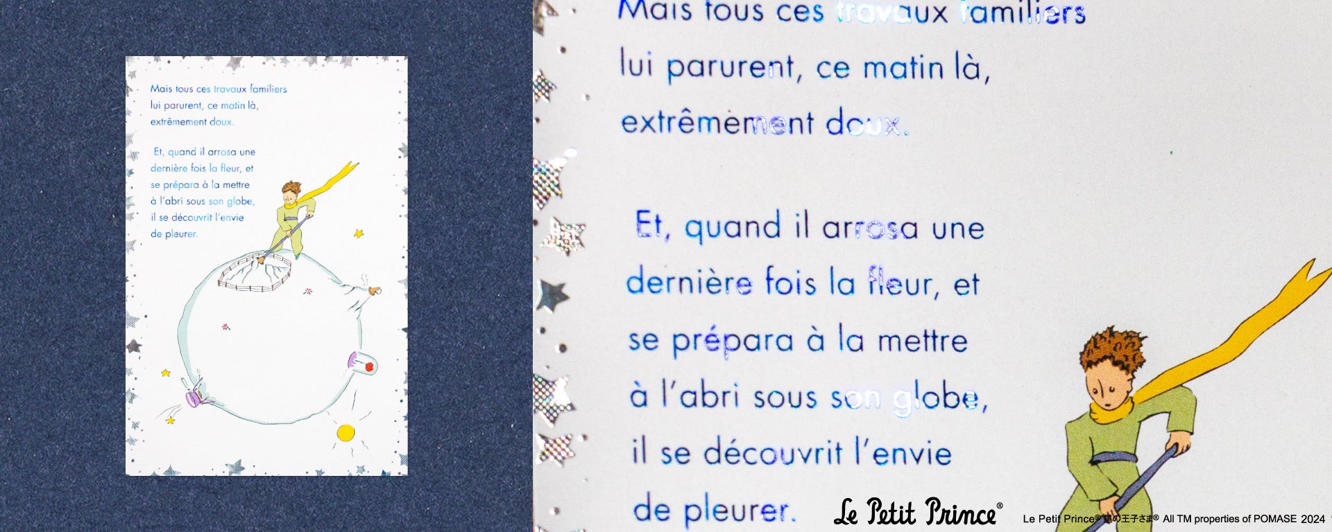 輝きでいっぱいの星の王子さまの世界を、きらめく箔押しと共にお楽しみください。