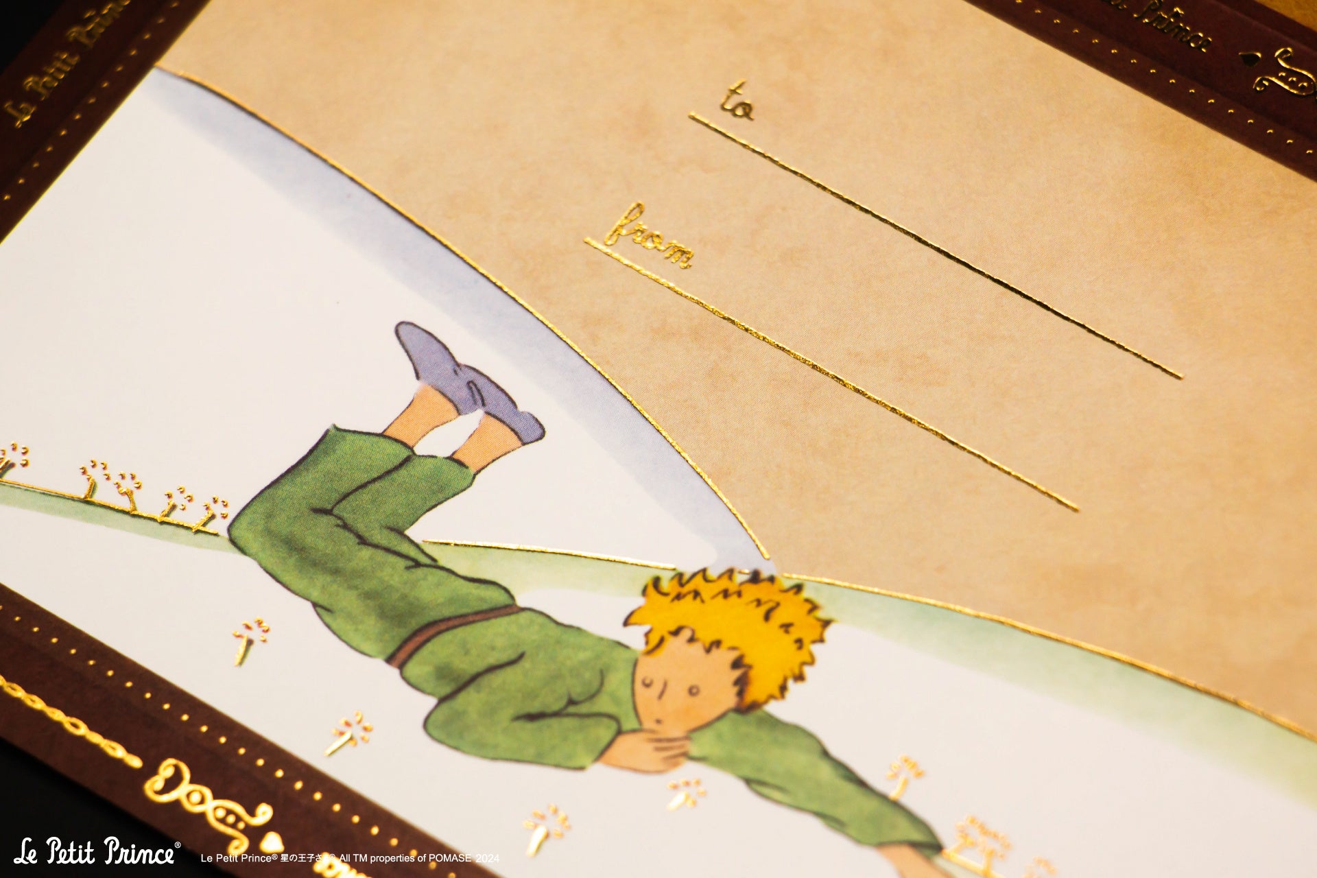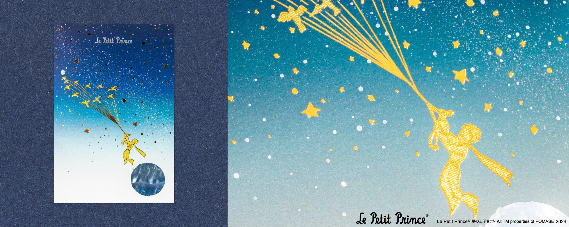 小さな王子さまの大冒険をテーマにした箔押しポストカードです。