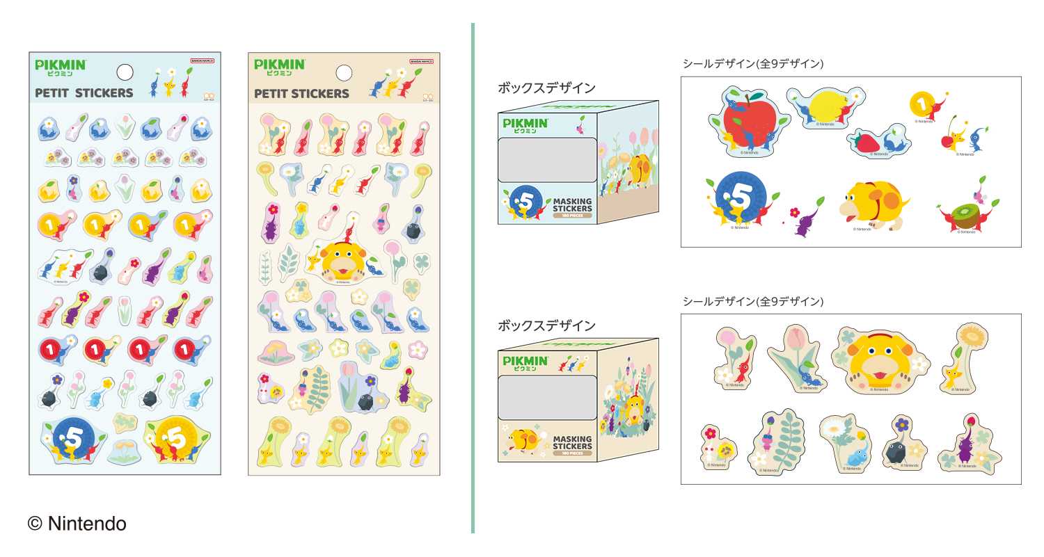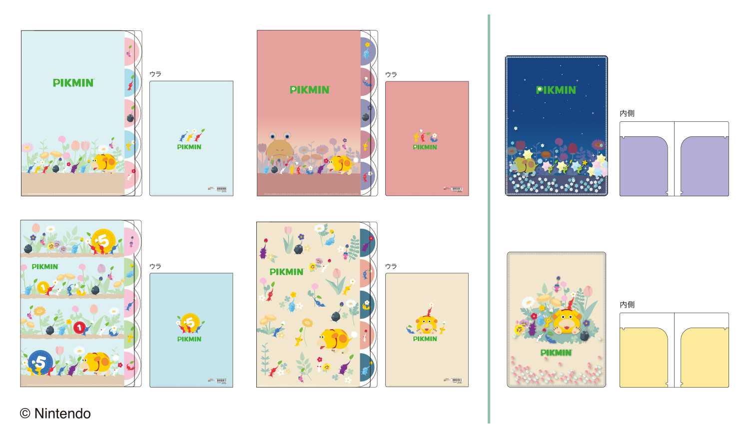大きく2つのデザインテーマに分かれており、1つ目は時間の移ろいを感じさせる「あさ・ゆうぐれ・よる」のカラフルなデザイン。2つ目はピクミンたちの個性あふれる行動「はこぶ」「あつまれ」「ちらばり」をモチーフにしたデザイン。