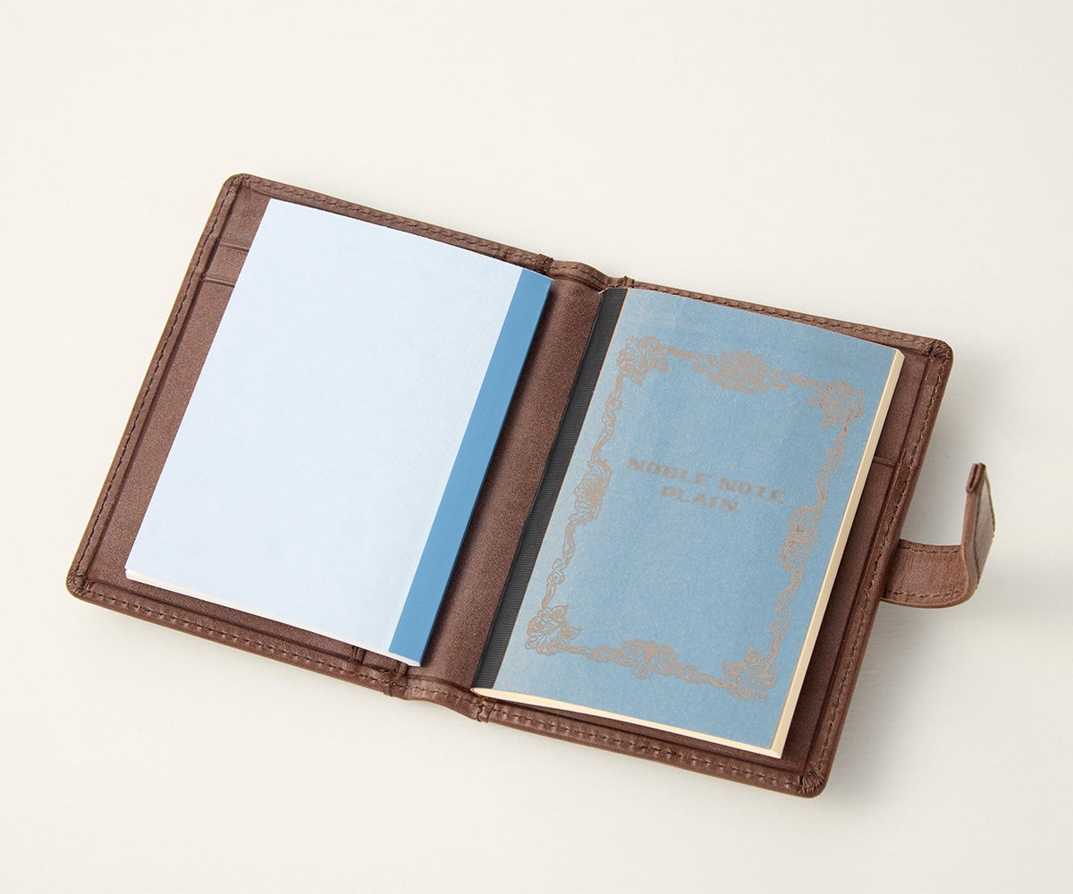 メモ以外にカードポケットも付いており、メモと一緒にカードを持ち運べます。また、メモ差しの他にノート差し用のポケットも付いているので、A7サイズノートカバーとしても使えます。