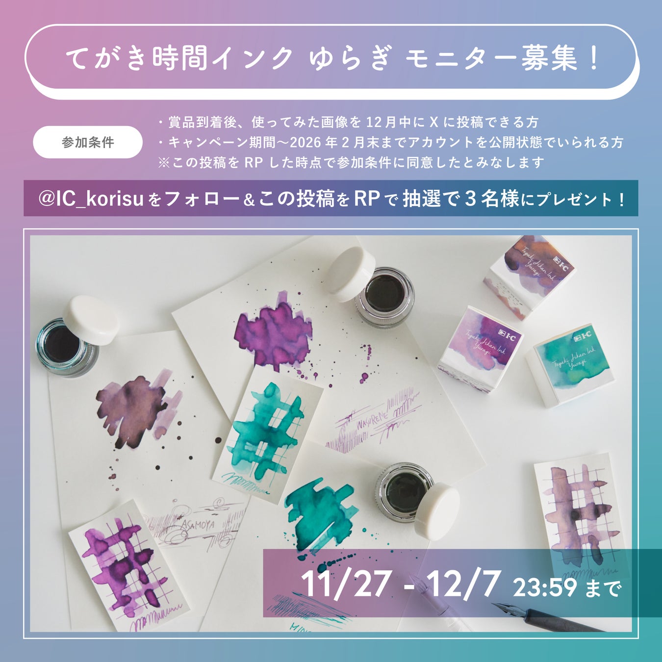 2025年11月27日(木)から、アイシー公式X(@IC_korisu)にて製品モニターにご協力いただける方を募集いたします。