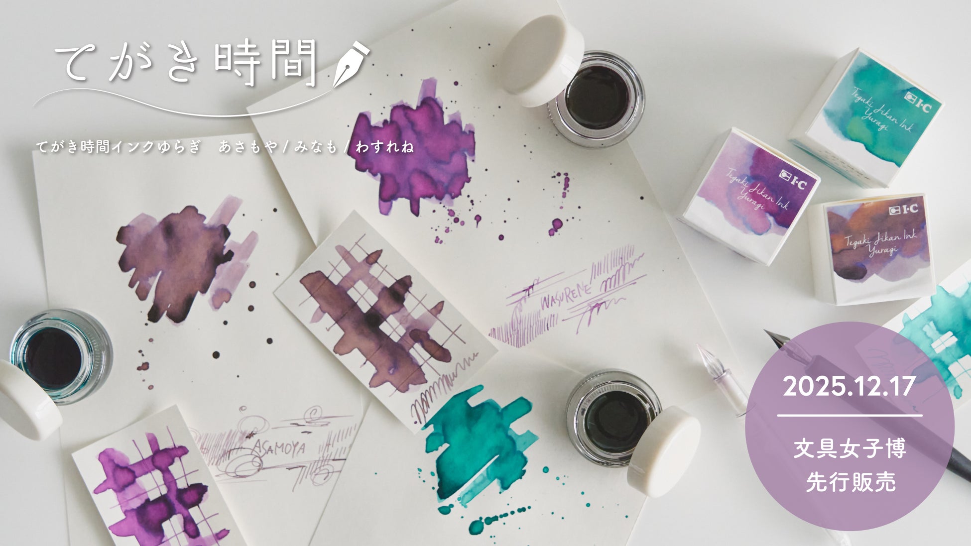 文具女子博2025の会場では、オリジナル箔押しパッケージにインク現品をセットした『アイシー てがき時間インク ゆらぎ 3個セット』も同時販売いたします。