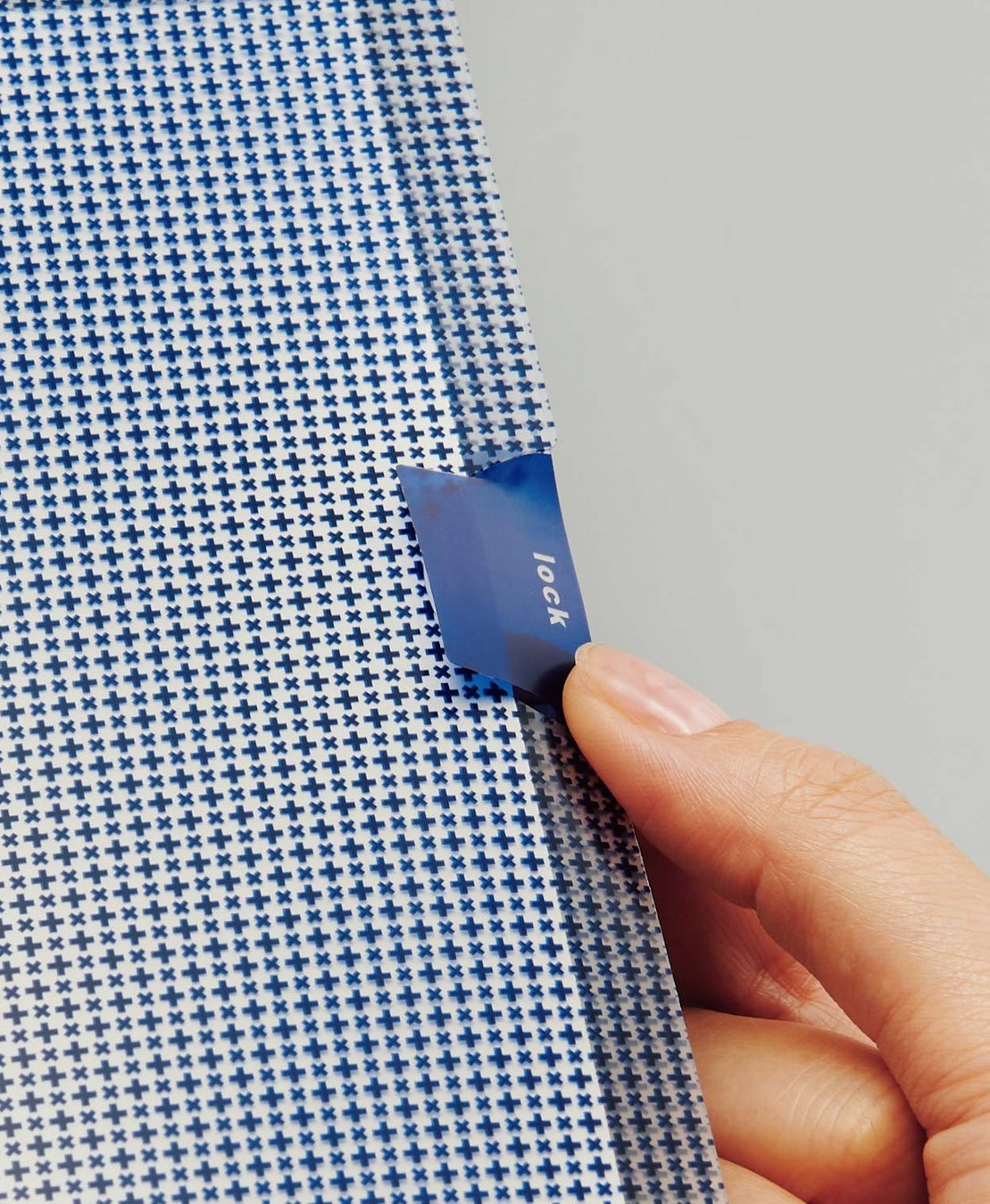 そこで、書類のサイズに関わらず安心してお使いいただけるよう、カモフラージュ柄をホルダーの端まで広げた全面印刷にしました。また、収納した書類の落下を防ぐロック機能を新たに搭載。ホルダー開口部の上下2カ所が開かないようにロックできる仕組みで、A4サイズの用紙だけでなく、小さな書類も安心して持ち運べます。