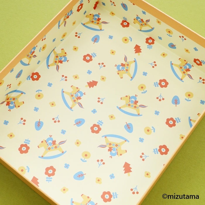 白の箔押しが入ったおどうぐ箱は、箱の内側にもmizutamaさんデザインの柄紙が。