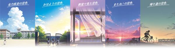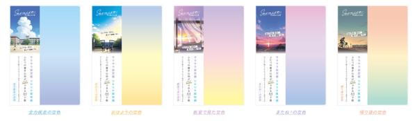カラーは、全力疾走の空色・おはようの空色・教室で見た空色・またね!の空色・帰り道の空色の5色。