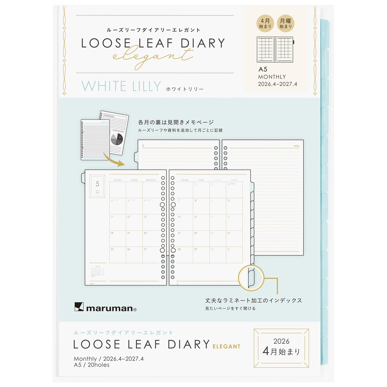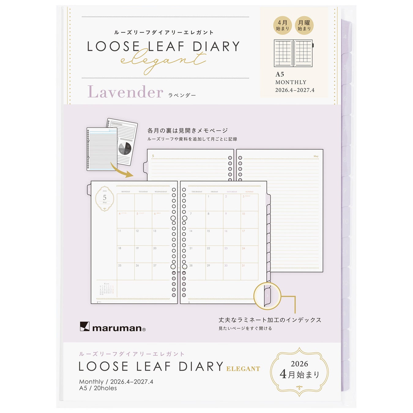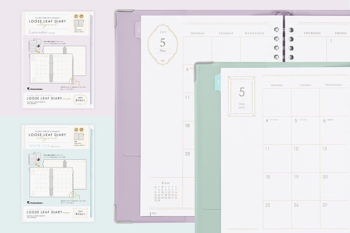 マルマン株式会社(本社:東京都中野区)は、自分好みにカスタマイズできるマルマン手帳の2026年4月始まりルーズリーフダイアリー各種アイテムをオンラインショップ及び一部文具小売店にて2026年 1 月9日(金)より発売致します。加えて、 人気バインダー『ユアンス』にルーズリーフダイアリーエレガントをセットした『ユアンス ダイアリー』も4月始まりダイアリーに登場いたします。
