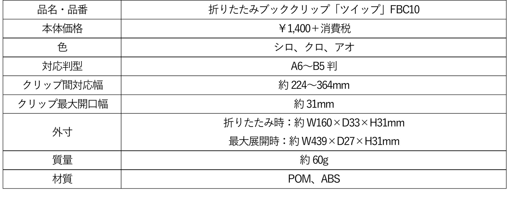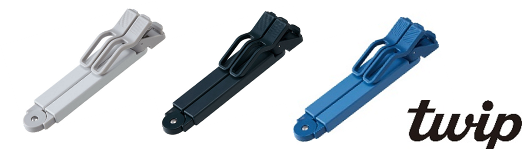 「ツイップ」は、左右のクリップが独立して動くブッククリップです。本の左右のページ数に大きな差がある場合でも、それぞれの厚みに合わせてしっかり固定できます。また、横からはさむ構造でクリップの取り外しが不要なため、クリップを上げるだけでスムーズにページがめくれます。本体はコンパクトに折りたたみ可能で、ペンケースに入れて手軽に持ち運べます。 カラーはシロ、クロ、アオの3色展開です。