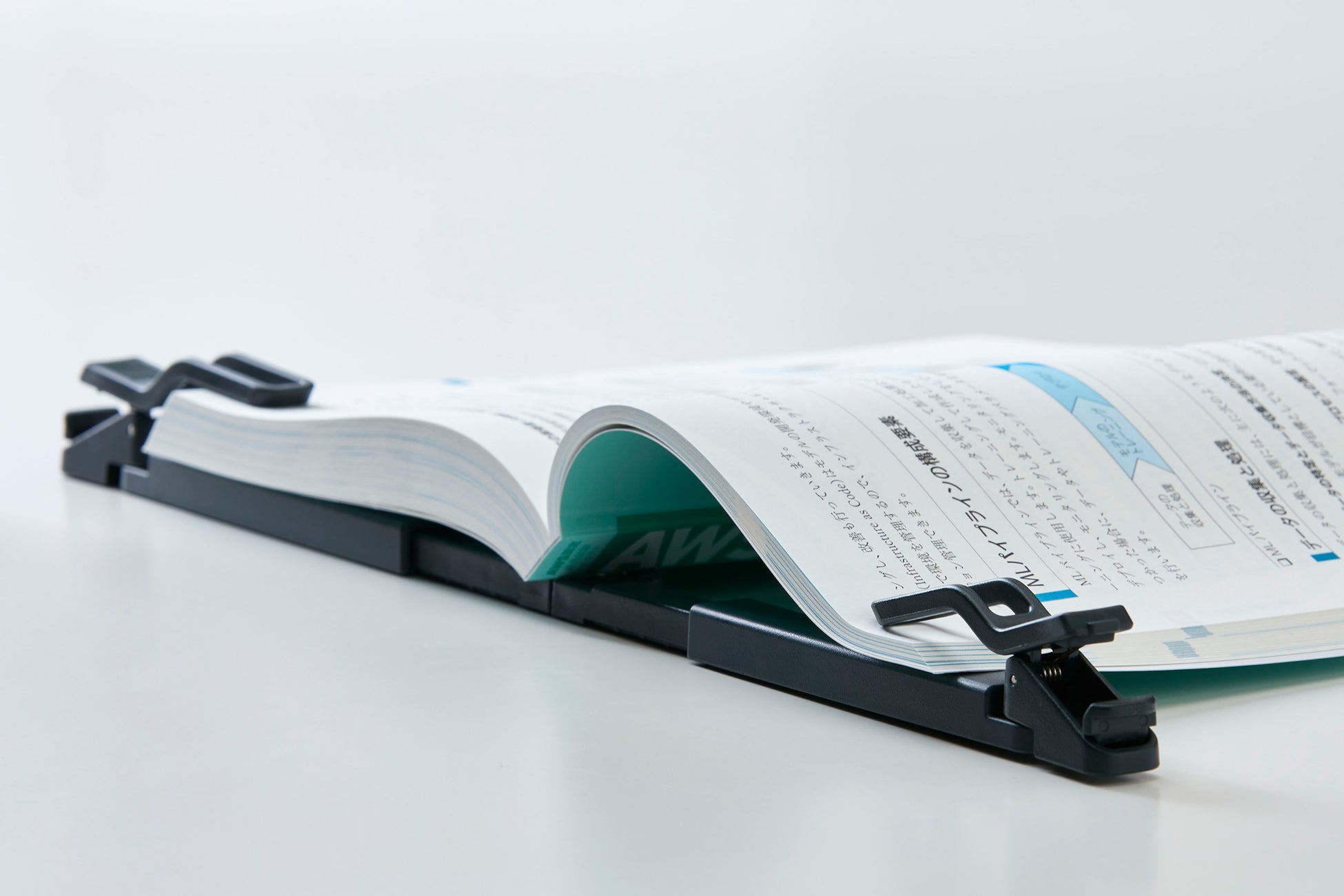 左右のクリップが独立して動くため、参考書の始めや終わりなど、