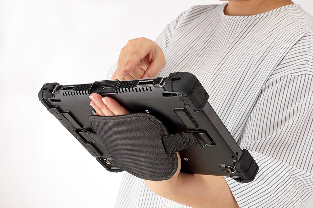 豊富なオプションにより、現場での使い勝手がさらに高まります。専用のマルチジャケットを装着することで防塵・防水対応※となり、工場や倉庫など埃や水滴が発生しやすい環境でも利用できます。またハンドホルダーやショルダーベルト、VESA対応の自立スタンドや壁掛け金具など、各種オプションの取り付けも可能になり、活用のスタイルが広がります。ドッキングユニットや充電クレードル、2in1キーボードなどの周辺機器を組み合わせて、検品作業や事務処理など多様な業務にも柔軟な対応が可能です。