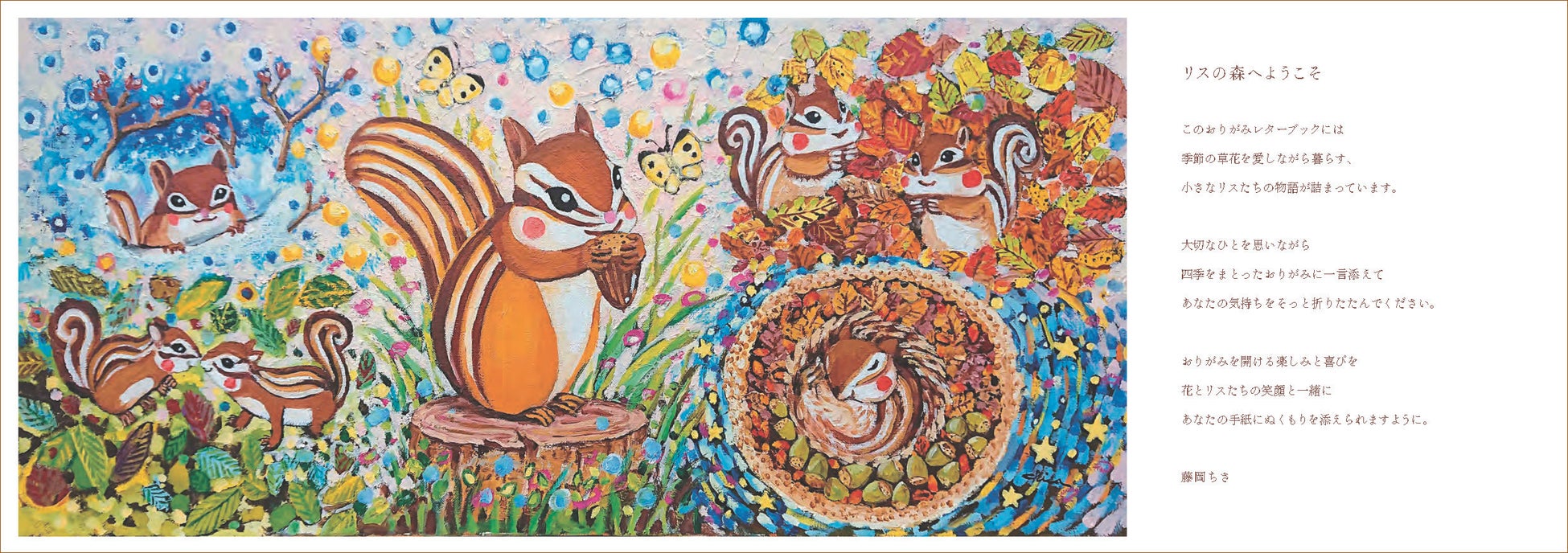 ホーム > 新製品情報・特集 > 「リスを描く作家」藤岡ちささんによる、愛らしすぎるレターブック『リスのおりがみレターブック』