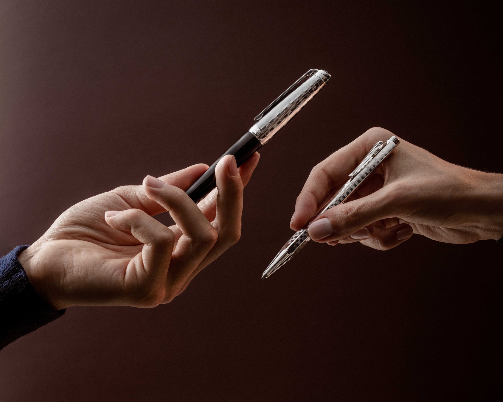 エクリドールのボディには、宝石細工師の精度でダイヤモンド彫刻を施した格子模様のギロシェが施され、光を捉えながらメゾンの職人技の輝きを余すところなく映し出します。プラチナコーティング、ゴールドコーティング、ローズゴールドコーティングの3種類の卓越した仕上げが、この定番コレクションを構成しています。プラチナコーティングモデルは全4種類の筆記モードで展開され、ゴールド、ローズゴールドモデルはボールペン限定です。ギフトセットにはレザーケースを組み合わせ、ケース内部のシルバーまたはブロンズ調は、細部までのこだわりと優雅さを反映しています。