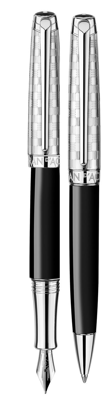 万年筆とボールペンで展開される「レマン ダミエ」スペシャルエディションは、控えめでありながら現代的なブラックラッカー仕上げのボディと、メゾンの職人技の証である格子模様をダイヤモンドカットで刻んだロジウムコーティングのキャップを組み合わせた逸品です。各筆記具は、再解釈されたダミエ柄をエンボス加工したレザーケースとシルバー調の内装を備えた特別なギフトセットで提供されます。単なる筆記具を超え、優雅に筆記の芸術を称える理想の贈り物としてデザインされています。