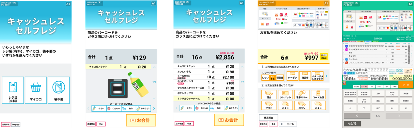 量販店向けパッケージトータルソリューションストアシステム「PrimeStore(プライムストア)」は縦画面レイアウトに合わせて操作画面を刷新し、従来のセルフレジ向け機能を基盤に直感的な操作がしやすいUIを採用しています。視認性と操作性を高めることで、スムーズな会計を可能にし、店舗運営の効率化と顧客体験の向上に貢献します。