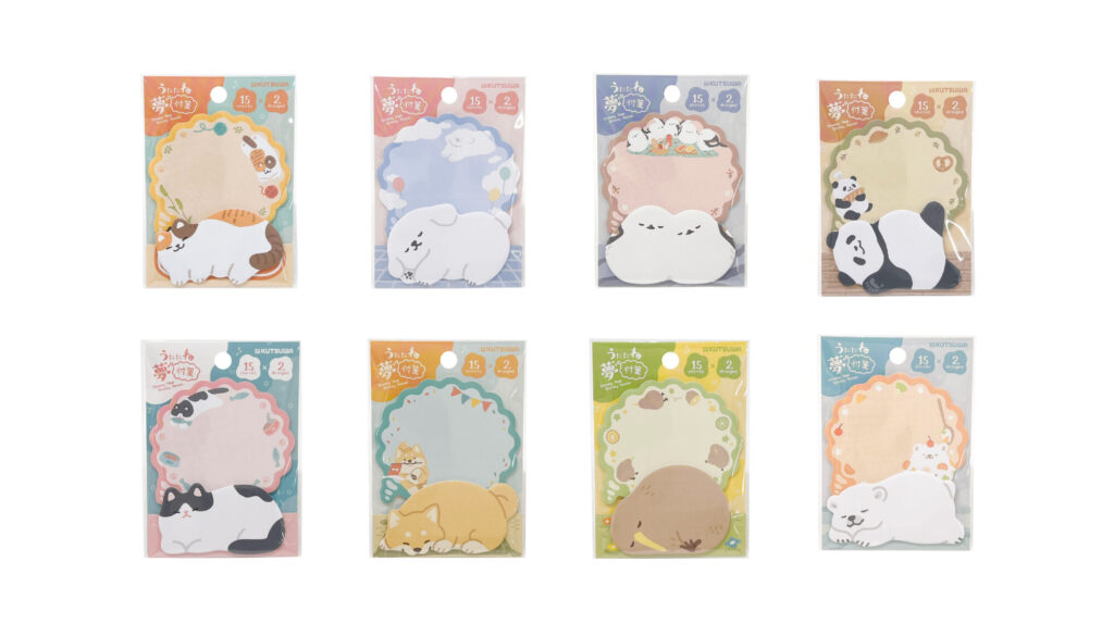 クツワからどんな夢を見てるのかな?うたたね動物たちのイラストが可愛い「うたたね夢付箋」が登場。