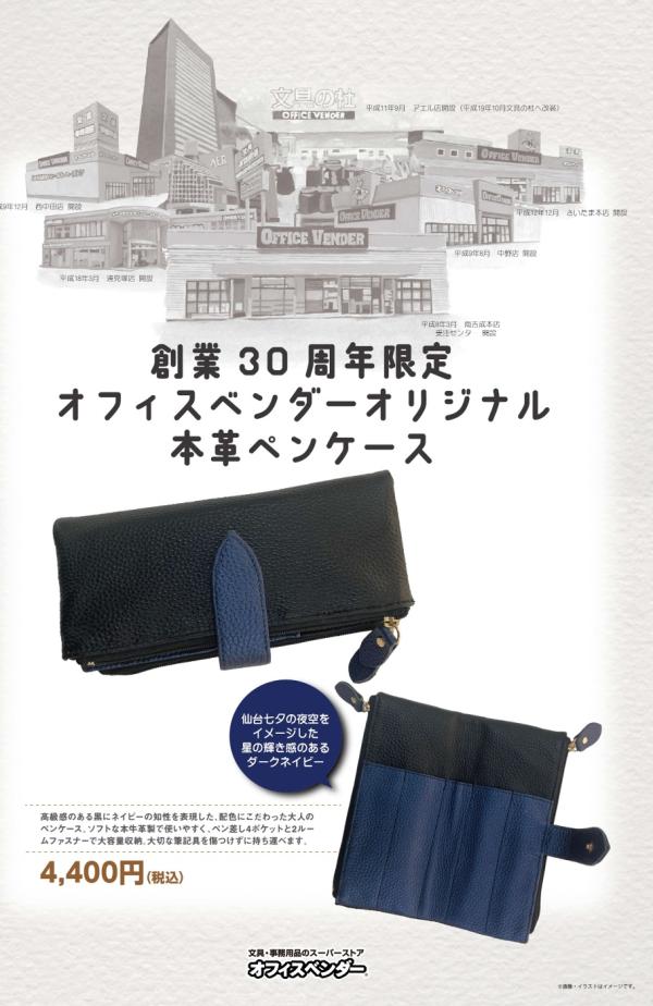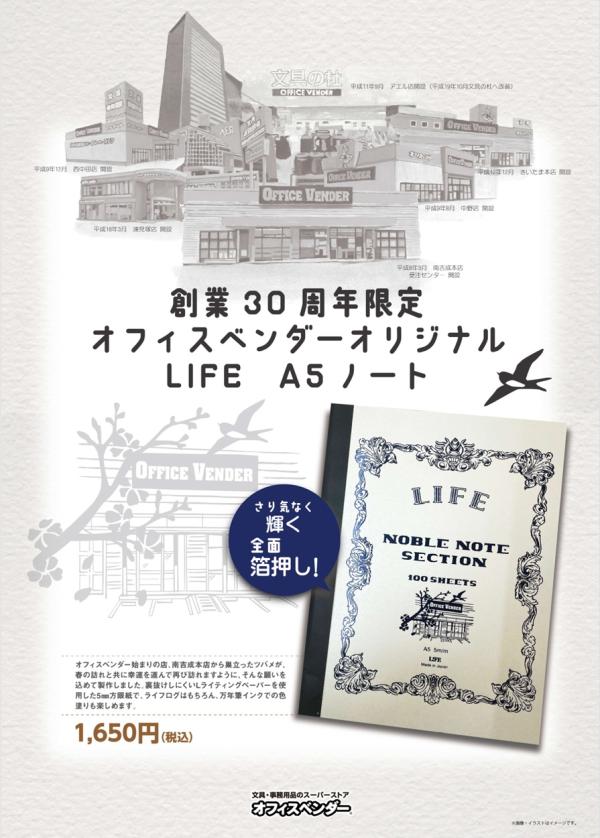 株式会社オフィスベンダー(本社:宮城県仙台市、代表取締役:白木二郎)は、創業30周年記念企画の第2弾として、オリジナル商品「LIFE A5ノート」および「本革ペンケース」を発売いたします。